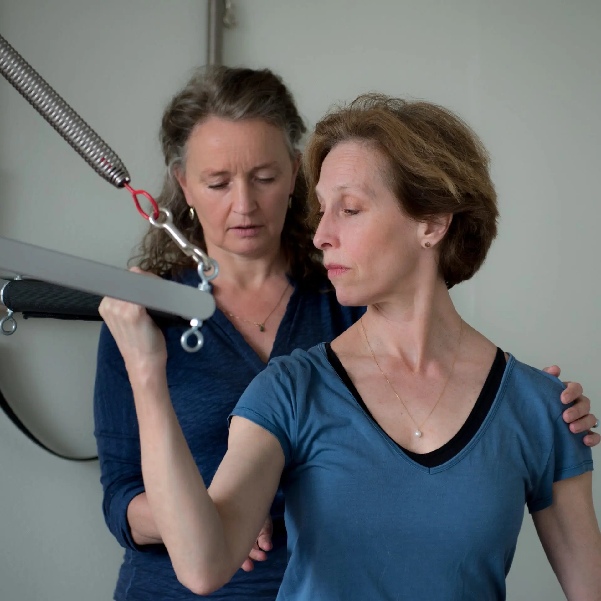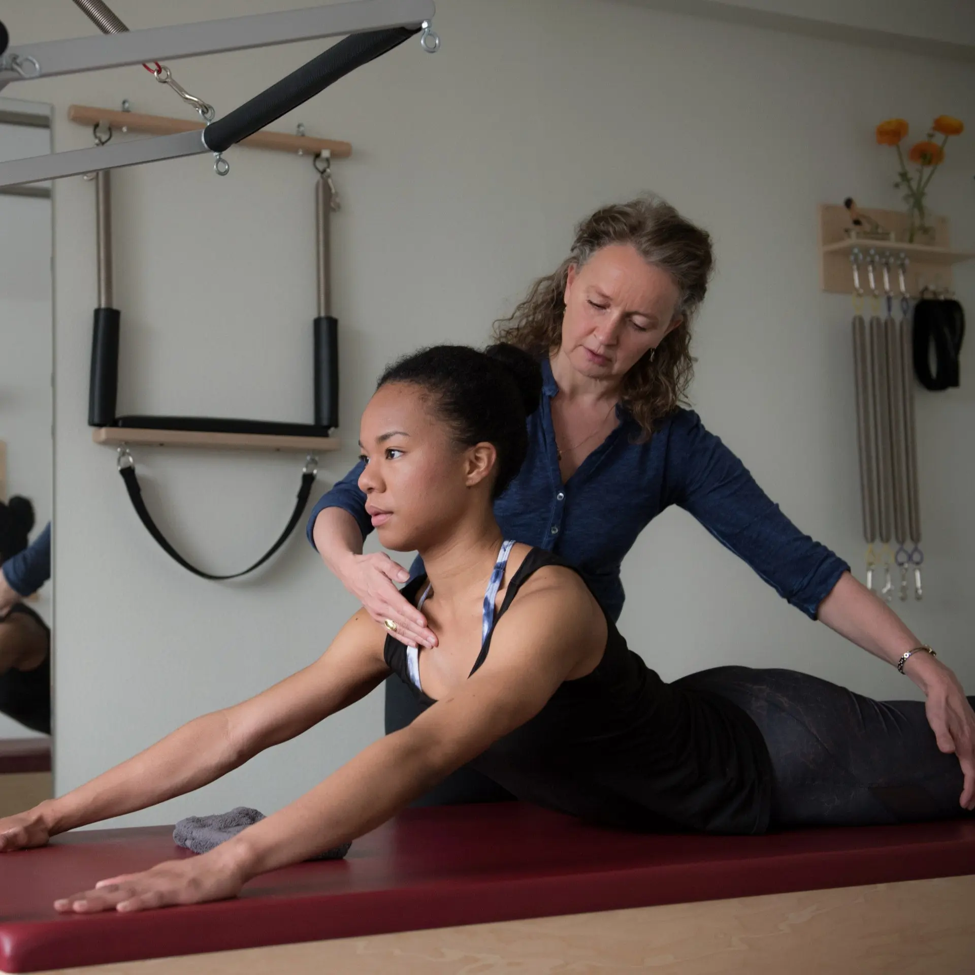 Starting your training at the studio you embark on a journey with your teacher, discovering your needs, and setting your goals. You will become aware of how your movement patterns affect every day life activities. Together with you, a personalised and challenging program is created with the aim to achieve your individual goals. Our staff is very experienced and will offer helpful feedback throughout your sessions. The Pilates method offers a very large amount of exercises, which all have an unlimited number of variations. We encourage you to practice at home and design a small program for you to help to integrate the new movement awareness into daily life.